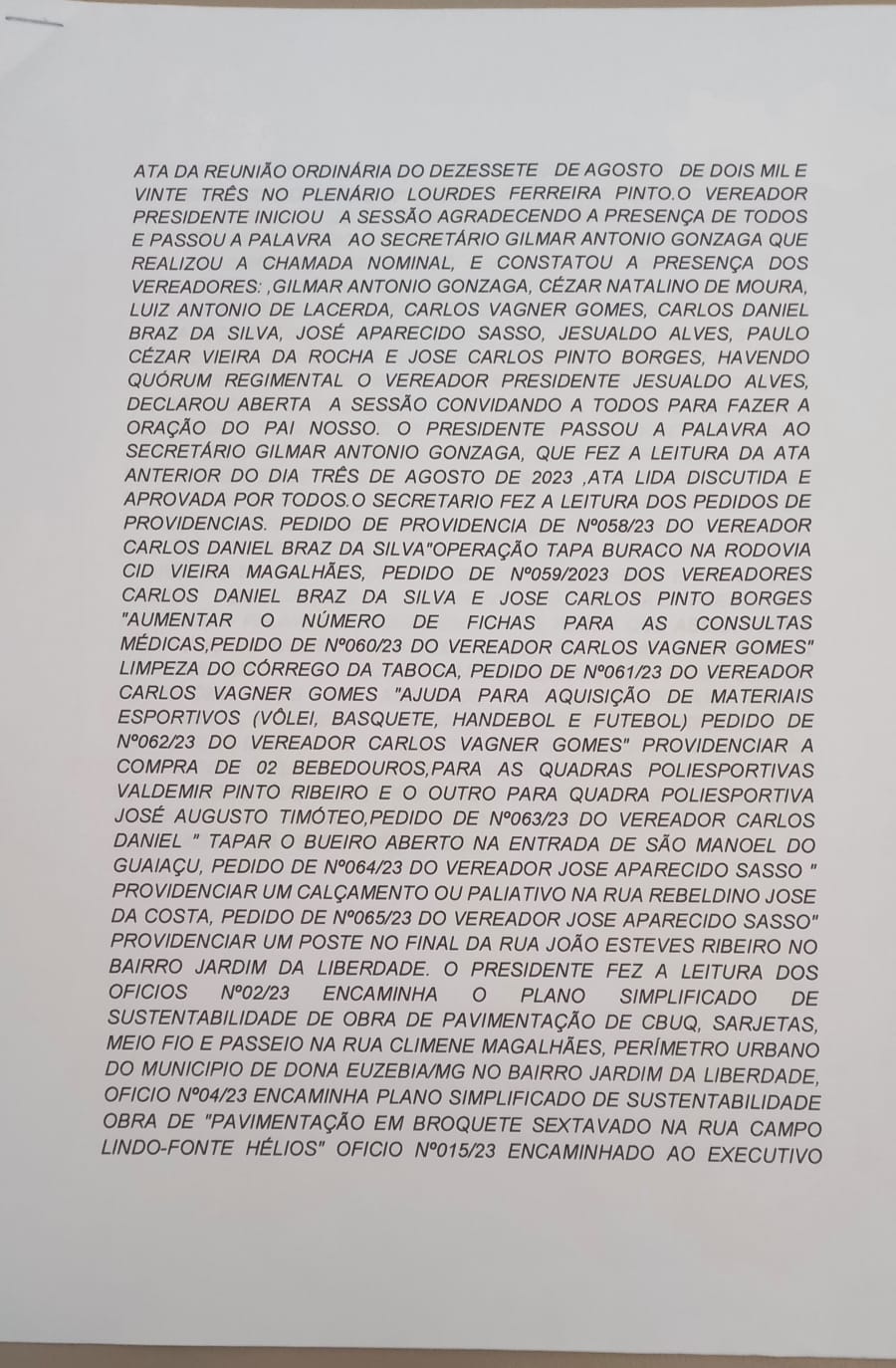 ATA DE REUNIÃO DO DIA 17/08/2023 APROVADA