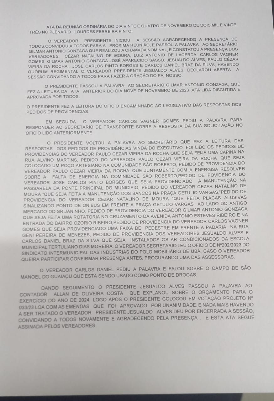 ATA DA REUNIÃO ORDINÁRIA DO DIA 24/11 / 2023 APROVADA