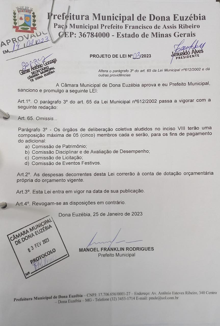 PROJETO DE LEI Nº03-2023 EXECUTIVO APROVADO PELA CMDE