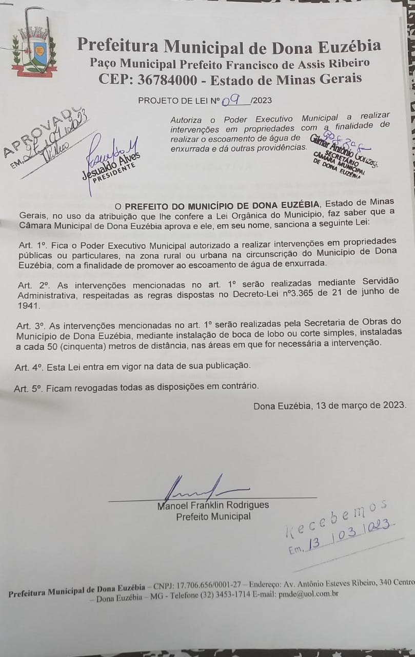 PROJETO DE LEI N09-2023 EXECUTIVO APROVADO PELA CMDE