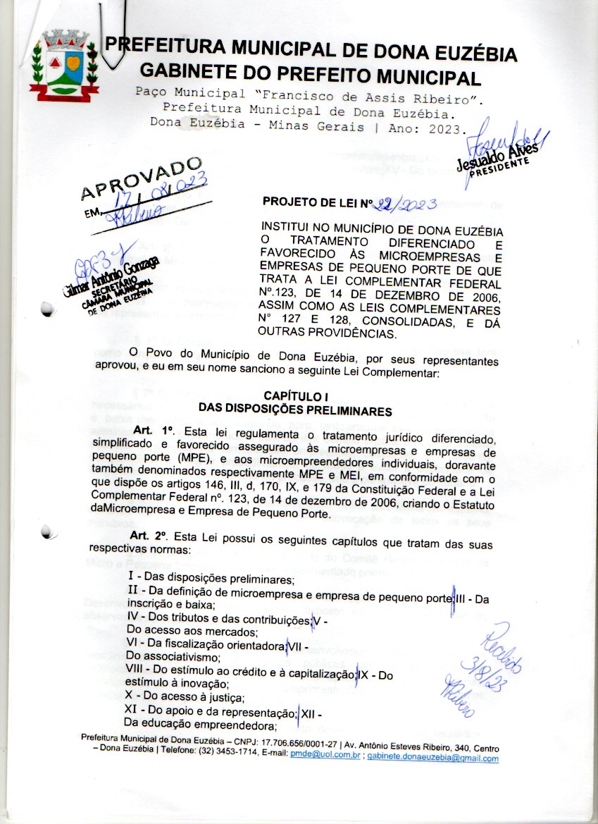 PROJETO DE LEI APROVADO PELO LEGISLATIVO Nº022/23