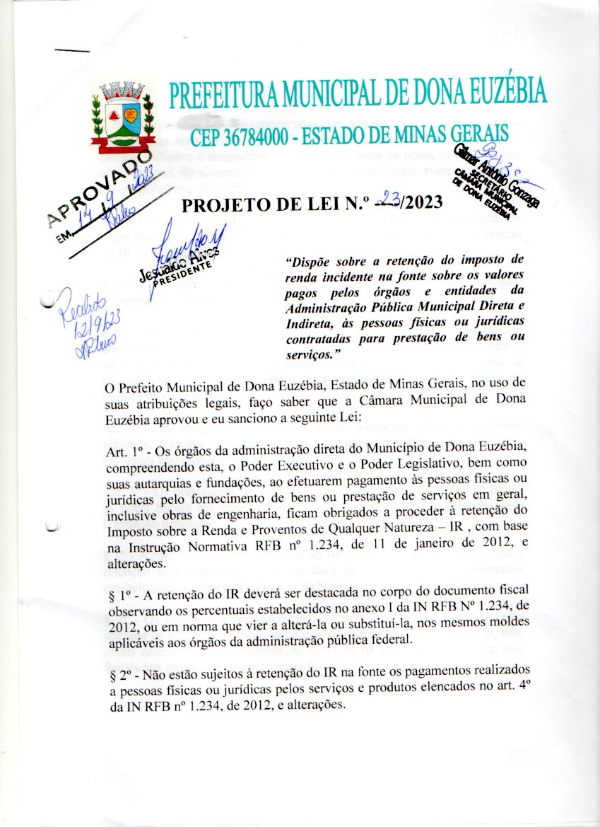 PROJETO DE LEI APROVADO PELO LEGISLATIVO Nº023/23