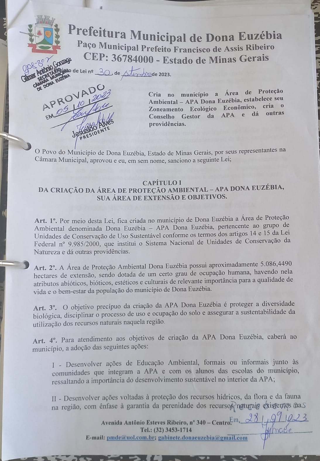 PROJETO DE LEI Nº030-2023 CRIAÇÃO DA APA NO MUNICIPIO DE DONA EUZEBIA.