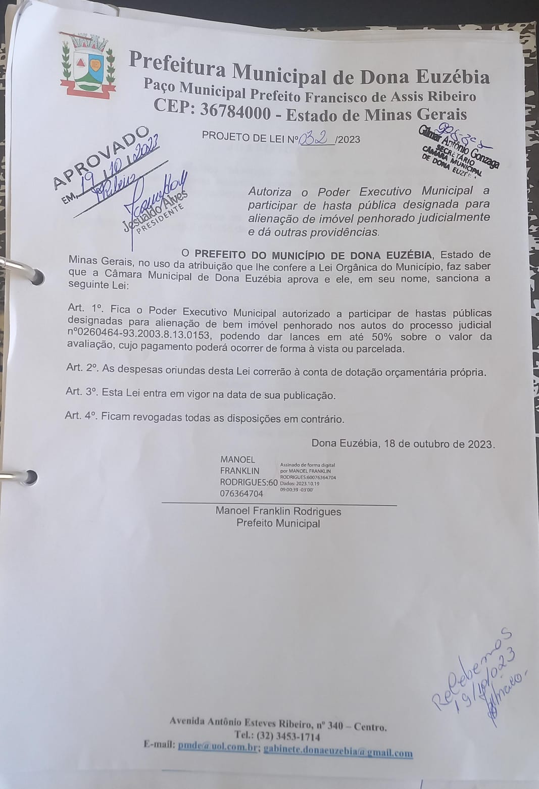 PROJETO DE LEI Nº032-2023 AUTORIZA O PODER EXECUTIVO MUNICIPAL A PARTICIPAR DE HASTA PUBLICA DESIGNADA PARA ALIENAÇÃO DE IMOVEL PENHORADO JUDICIALMENTE...