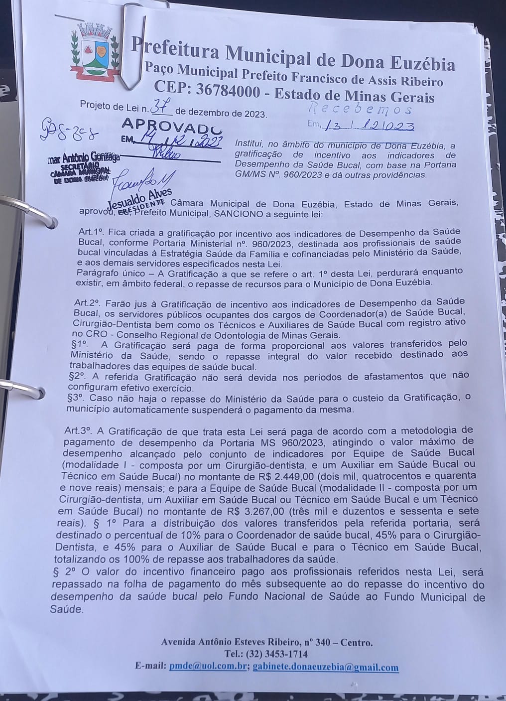 PROJETO DE LEI Nº37-23 INSTITUI NO ÂMBITO DO MUNICIPIO E DONA EUZEBIA GRATIFICAÇÃO DE INCENTIVO SAUDE BUCAL
