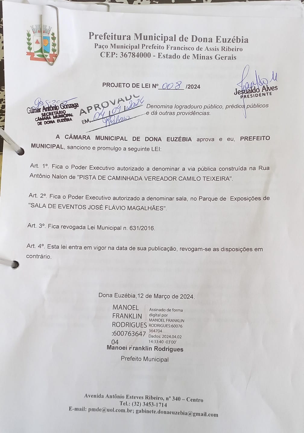 PROJETO DE LEI Nº008-24 DENOMINA LOGRADOURO PUBLICO, PREDIO PUBLICO E DÁ OUTRAS PROVIDENCIAS