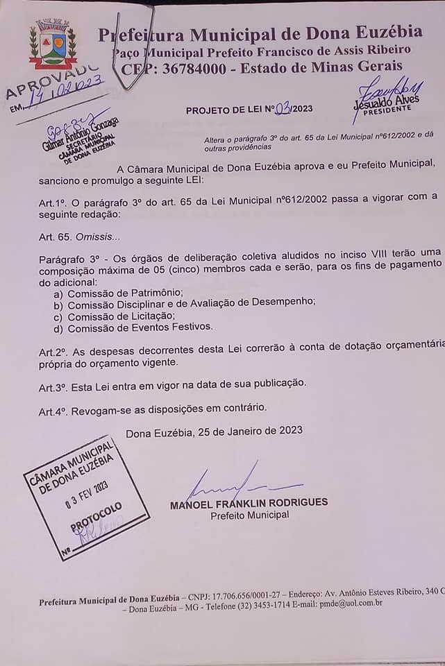 ALTERA O PARAGRÁFO 3º DO ART 65 DA LEI MUNICIPAL 612/2002 E DÁ OUTRAS PROVIDÊNCIAS.