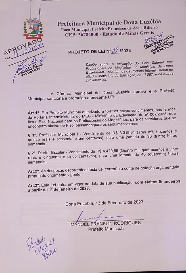 DISPÕE SOBRE PISO SALARIAL DOS PROFISSIONAIS DO MAGISTÉRIO