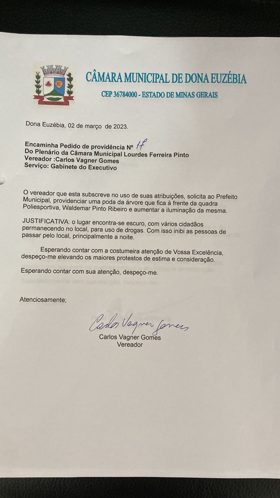 PEDIDO DE PROVIDÊNCIA Nº17/2023 DE AUTORIA DO VEREADOR CARLOS VAGNER GOMES