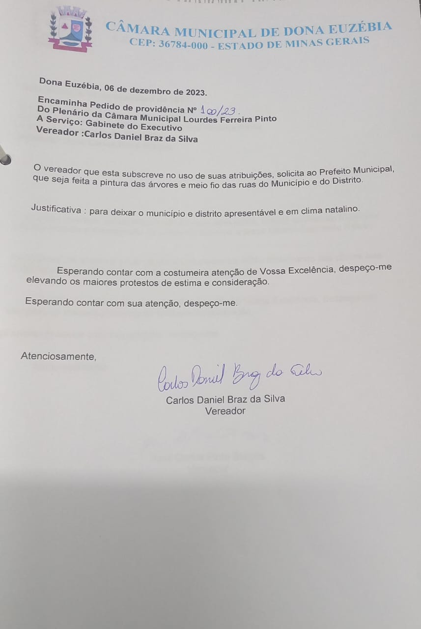 PEDIDO DE PROVIDENCIA Nº100 CARLOS DANIEL BRAZ DA SILVA