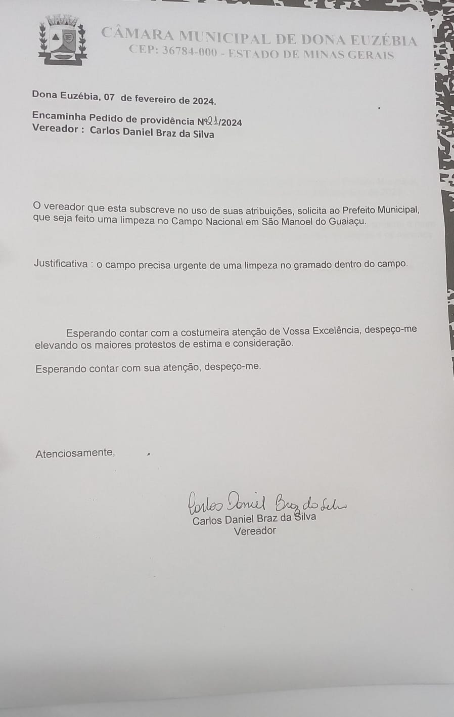 PEDIDO DE PROVIDÊNCIA Nº21 -24 CARLOS DANIEL BRAZ DA SILVA