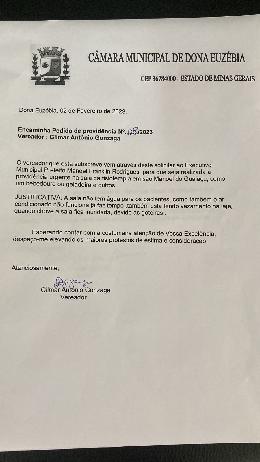 PEDIDO DE PROVIDÊNCIA Nº08/2023 DE AUTORIA DO VEREADOR GILMAR ANTONIO GONZAGA
