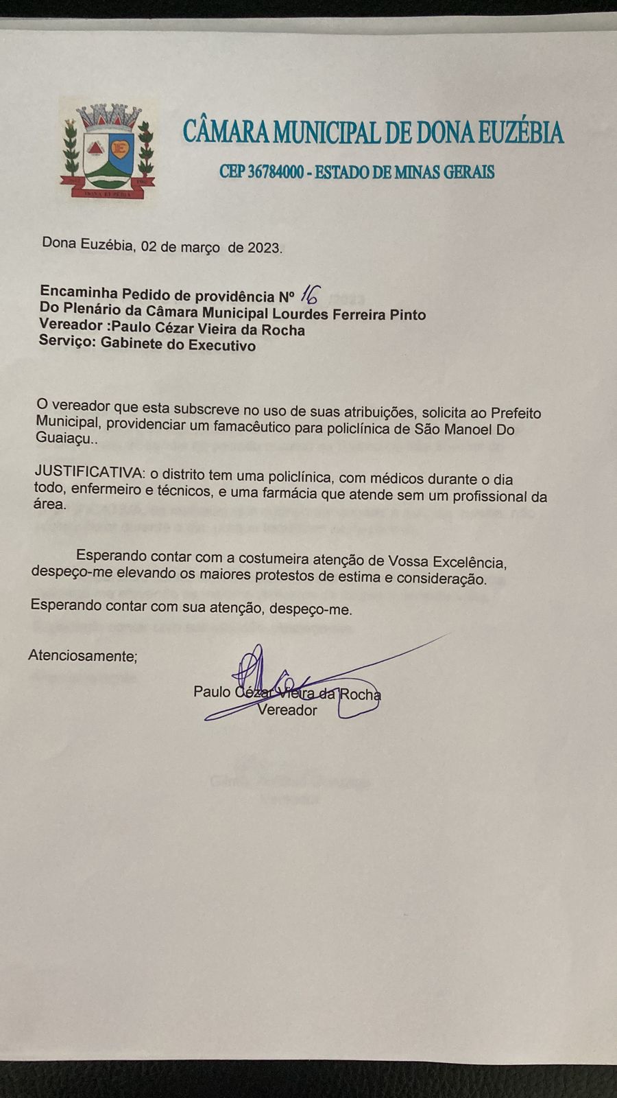 PEDIDO DE PROVIDÊNCIA Nº16/2023 DE AUTORIA DO VEREADOR PAULO CÉZAR VIEIRA DA ROCHA